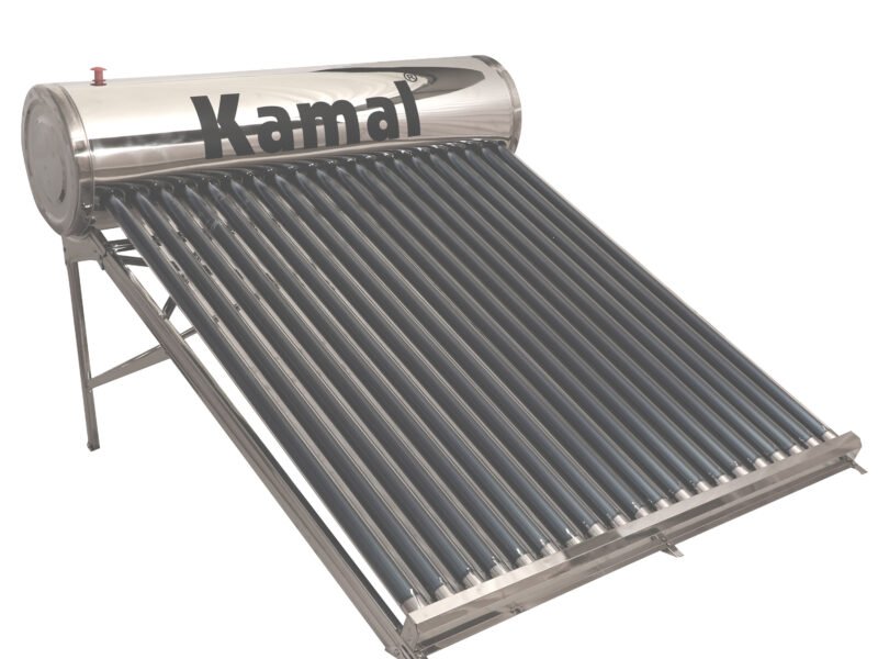 Kamal Solar 200 LPD ETC Stainless Steel Solar Water Heater. Energy-efficient solar hot water system with professional installation.