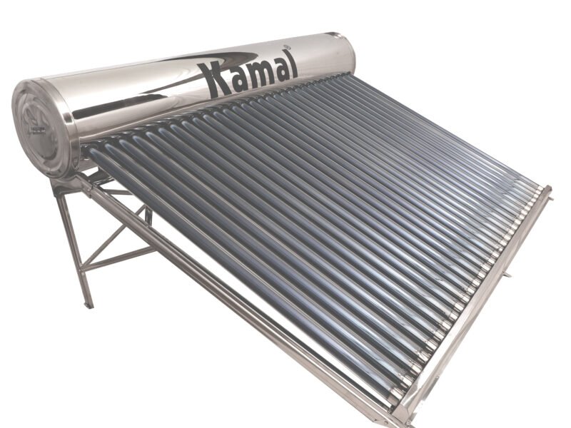Kamal Solar 300 LPD ETC Stainless Steel Solar Water Heater. Energy-efficient solar hot water system with professional installation.