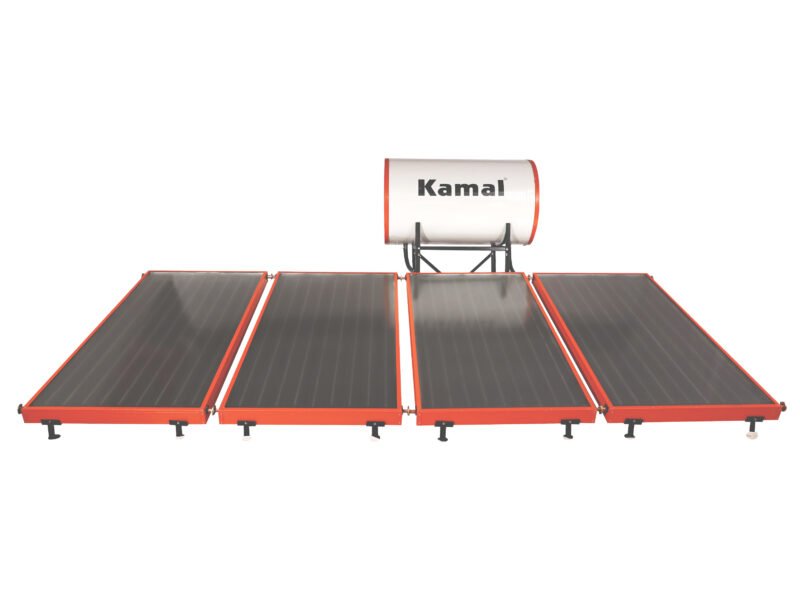 Kamal Solar 500 LPD Flat Plate Collector (FPC) Forced Circulation Non-Pressurized Solar Water Heater. Equipped with pump-assisted circulation for enhanced heat transfer and non-pressurized storage for cost-effective hot water solutions. Suitable for large residential complexes, hotels, and industrial applications requiring reliable solar hot water.