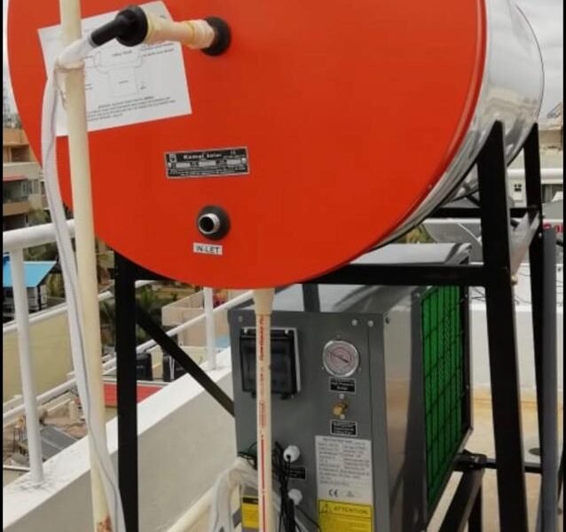 Kamal Solar Heat Pump with integrated non-pressurized storage tank. Combines energy-efficient heat pump technology with convenient built-in storage for a complete hot water solution. Delivers substantial energy savings compared to electric water heaters. Ideal for residential and small commercial setups where gravity-fed water pressure is sufficient.