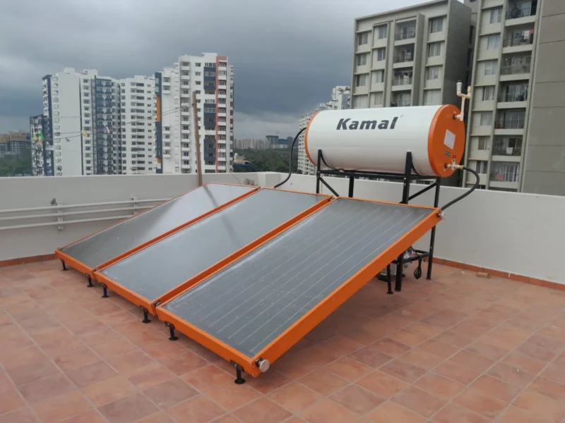 Kamal Solar Premium Hybrid System combining solar water heater with heat pump backup in a pressurized configuration. Enjoy the benefits of solar heating with heat pump support for uninterrupted hot water supply at high pressure. The pressurized tank ensures strong flow to all outlets in multi-storey buildings. Maximum energy efficiency with reliable year-round performance.